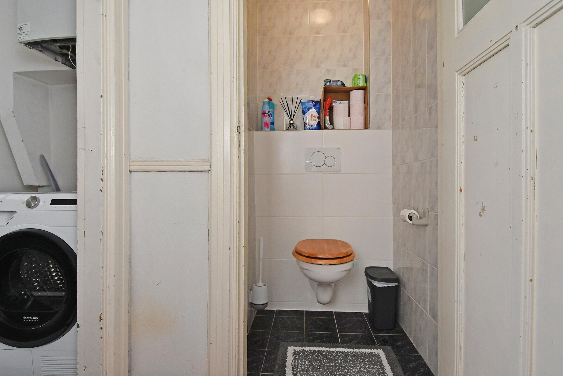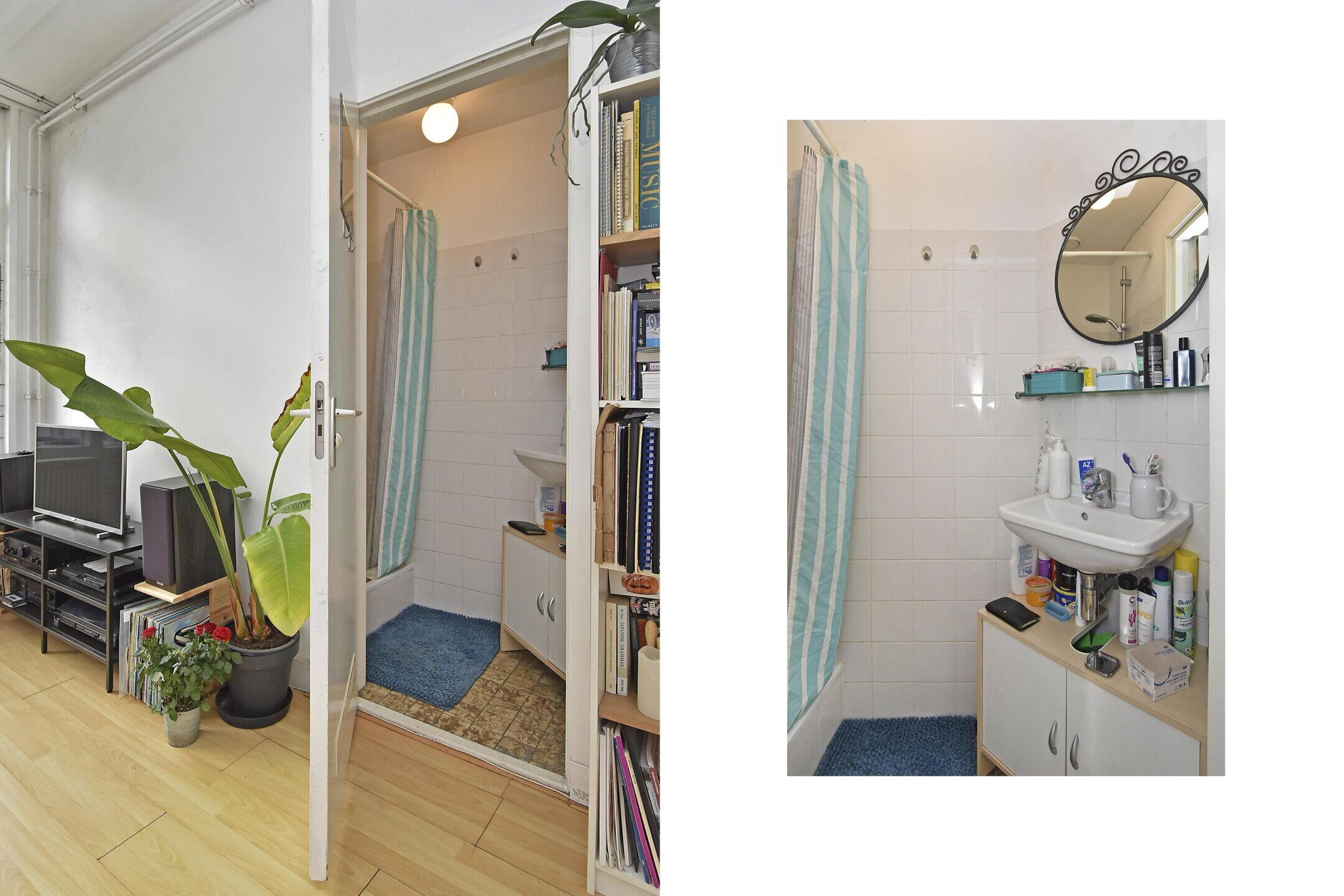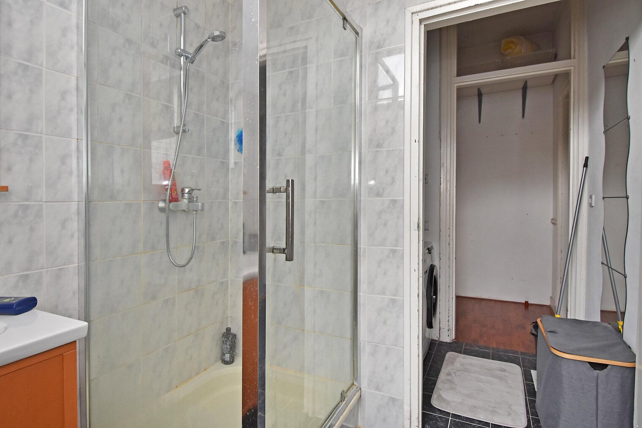 Entree met toegang tot de woon-/slaapkamer ensuite voorzien van een ingebouwde kast. Vanuit de woonkamer is toegang tot de half open keuken met voldoende ruimte. Verder bevindt zich op deze verdieping een badkamer, een hal met apart toilet en een wasmachineaansluiting.